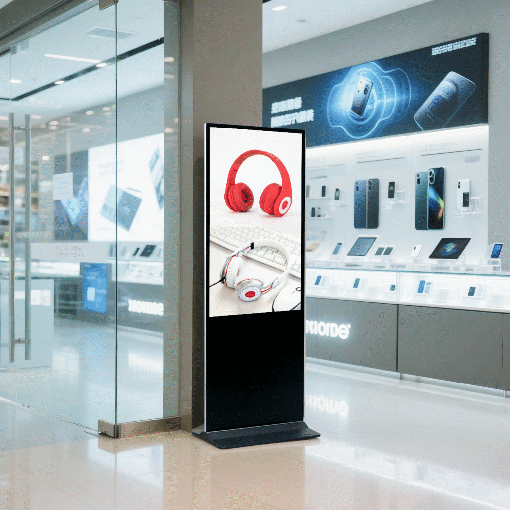 Floor standing digital signage is a freestanding electronic display designed for advertising, information sharing, and brand promotion in public or commercial spaces. Commonly used in retail stores, shopping malls, hotels, restaurants, and corporate lobbies, it delivers high-definition visuals and dynamic content to attract attention and engage audiences. Equipped with touch interaction, remote control, and AI integration, it allows real-time content updates and intelligent display management. Ideal for businesses seeking modern, flexible, and visually appealing communication solutions.