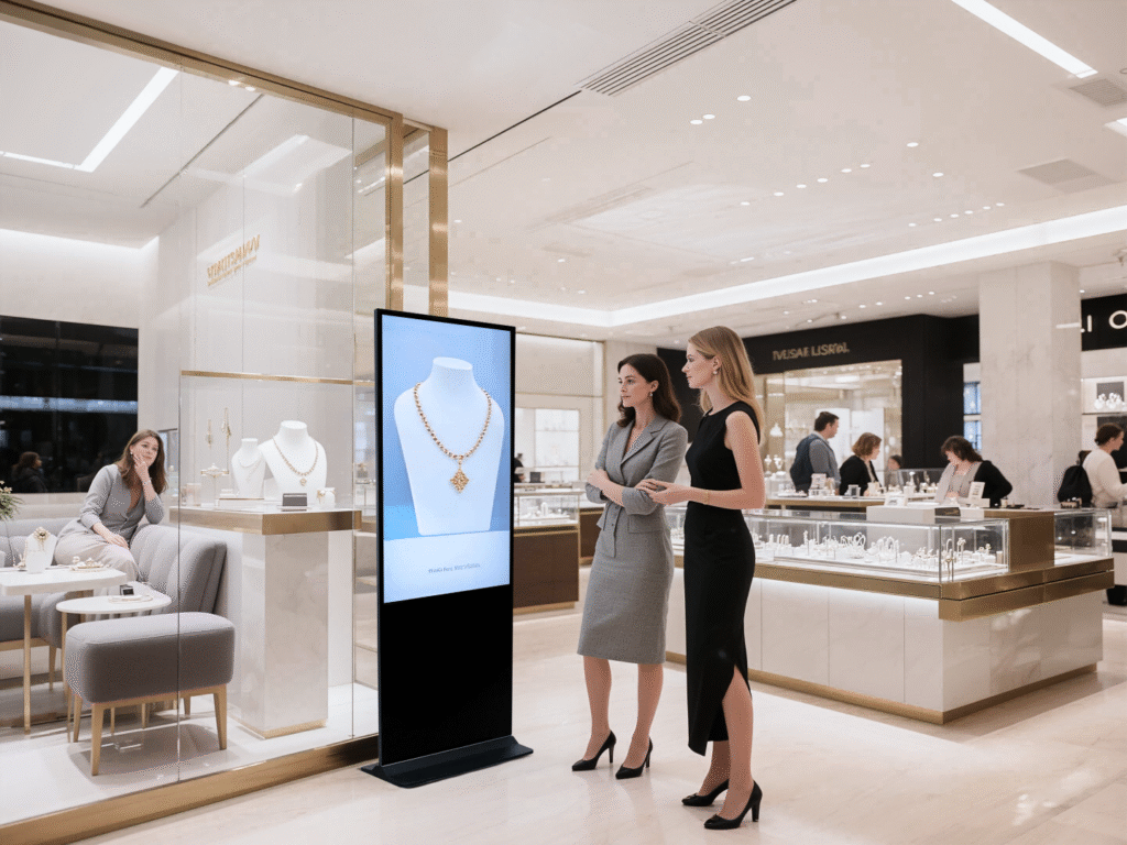 Available in 43”, 55”, 65”, and 75”, suitable for retail stores, banks, airports, malls, and outdoor plazas. Designed for full-scenario marketing and high-efficiency information display.