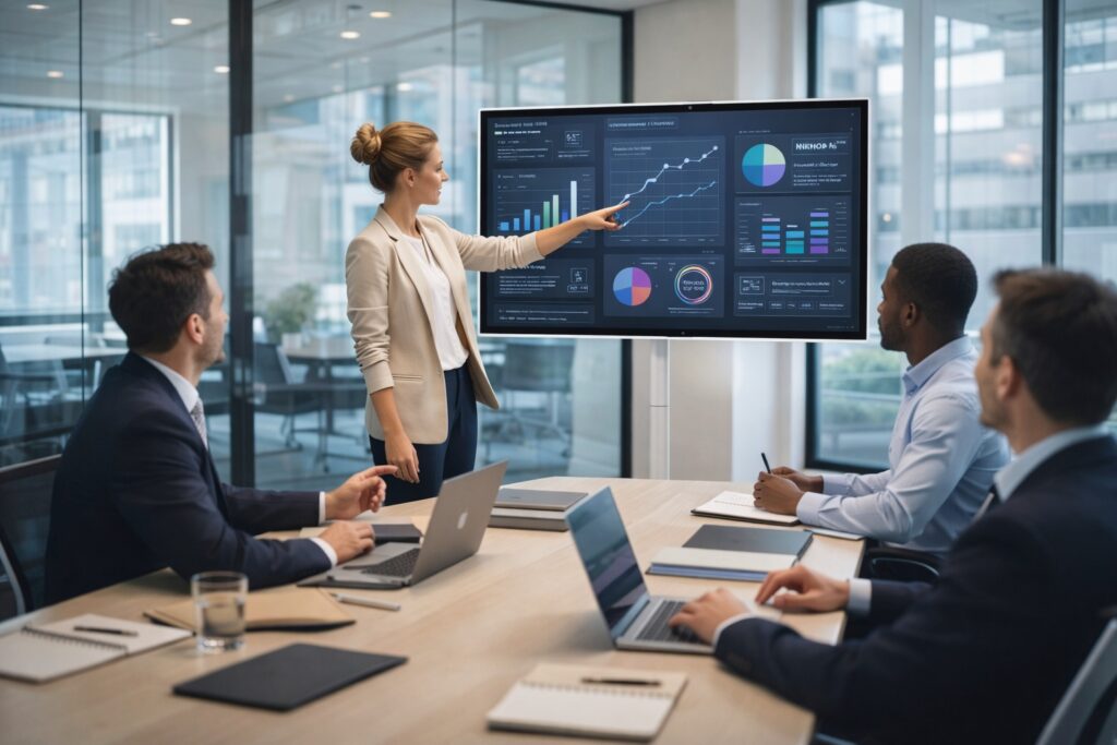 Un televisor inteligente portátil Ikinor para reuniones de negocios permite presentaciones profesionales sin necesidad de una instalación fija. Con pantalla compartida inalámbrica, interacción táctil y movilidad fluida, facilita la generación de ideas, las videoconferencias y la colaboración en equipo. Su diseño de soporte móvil permite distribuciones flexibles en la sala, lo que lo convierte en una solución de televisor inteligente portátil ideal para oficinas, salas de conferencias y espacios ejecutivos.