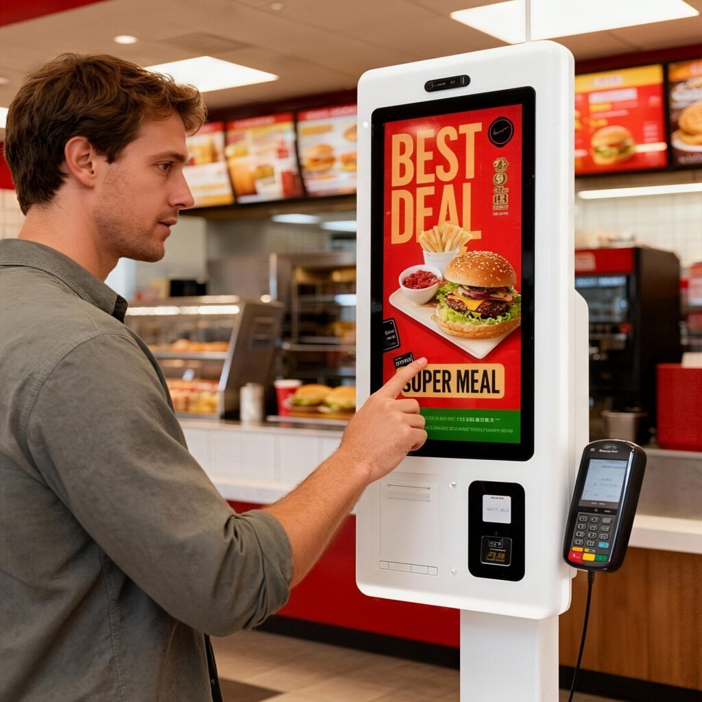 Self-order kiosks streamline ordering and reduce cashier workload.