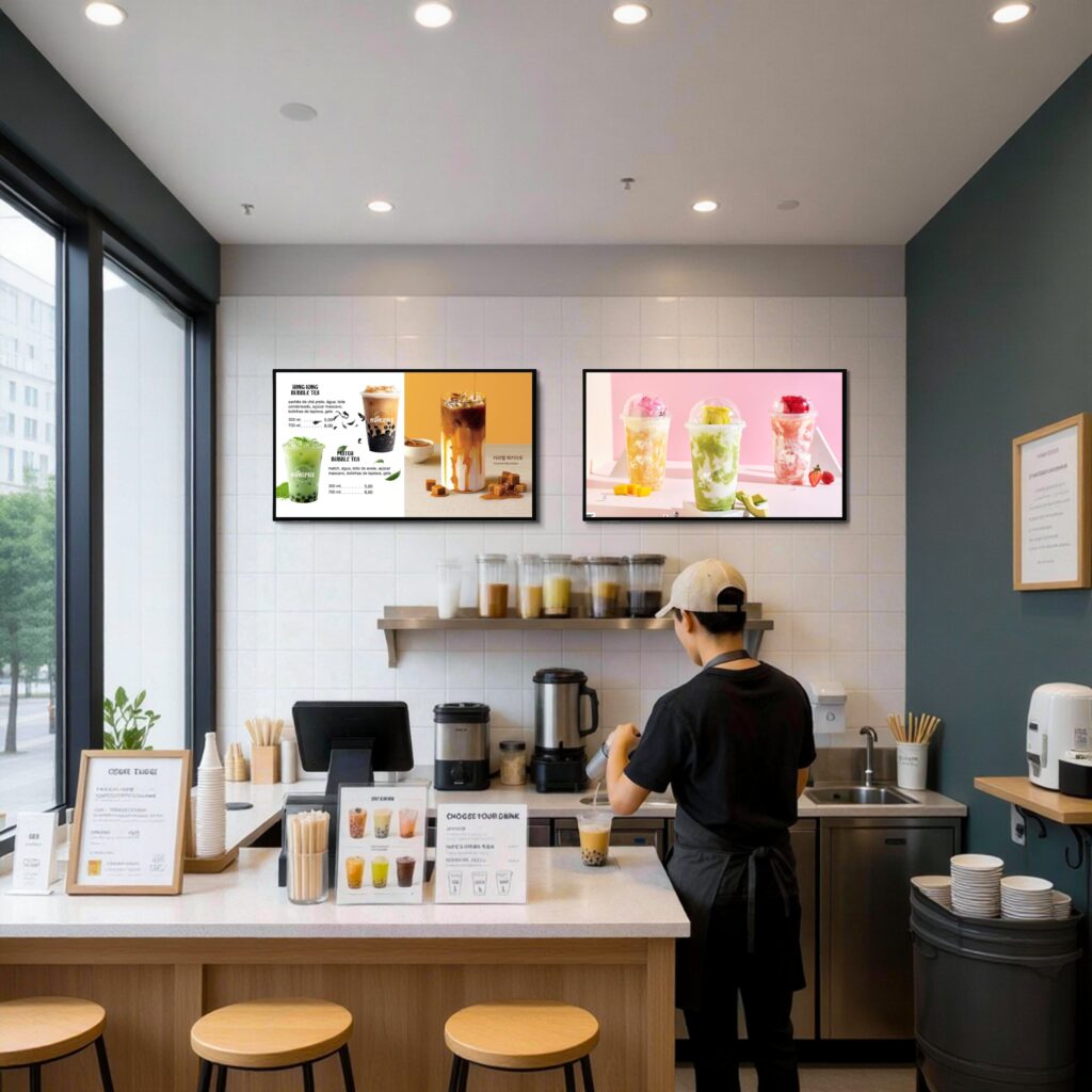 In restaurants and cafés, wall mounted digital display boards are commonly used as digital menu boards. Businesses can display menus, combo offers, daily specials, and promotional videos. Compared with traditional printed menus, digital displays allow quick updates and provide a more modern and engaging ordering experience for customers.