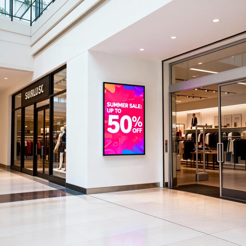 In retail stores and shopping malls, a wall mounted digital display board is widely used for product advertising, promotional campaigns, and brand storytelling. Retailers can update content instantly to showcase new arrivals, discounts, and seasonal promotions. The large wall-mounted screen attracts customer attention and enhances the overall shopping experience.