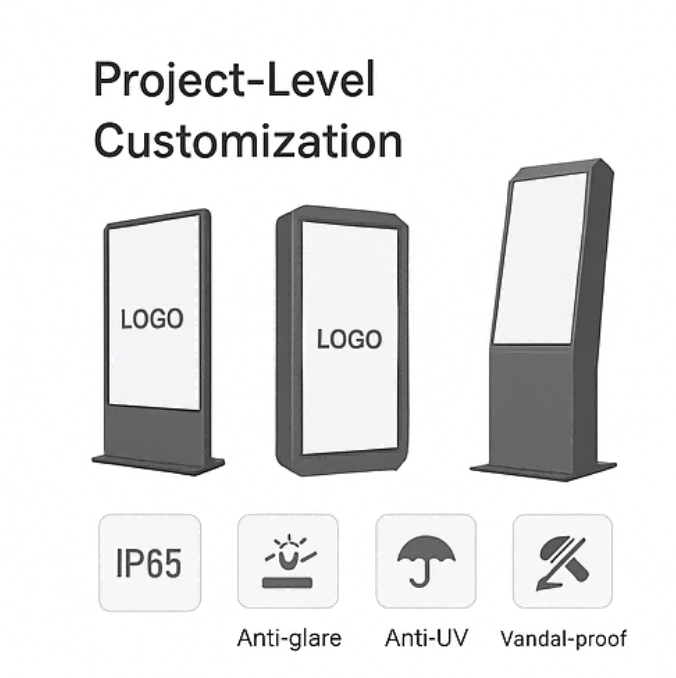 Enhance durability with outdoor IP ratings, anti-glare and anti-fingerprint glass, vandal-resistant structures, and tailored kiosk designs for specialized industry requirements.