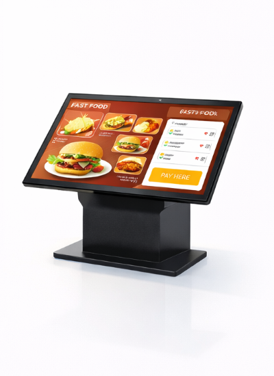 - Dual-screen configuration for advertising, order review, or staff-facing interfaces
